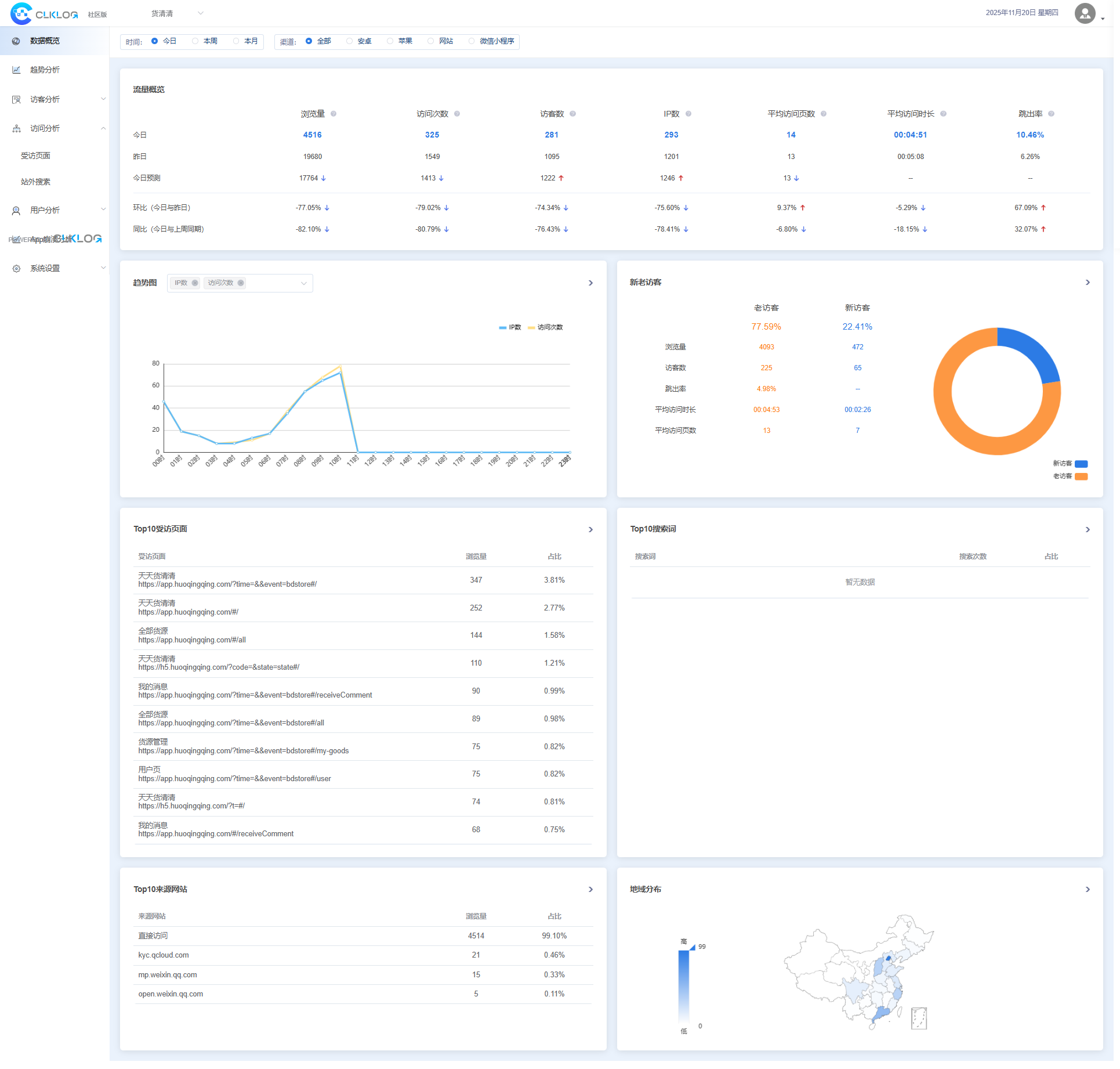 5. 10分钟后进入ClkLog前端查看数据是否正常加载